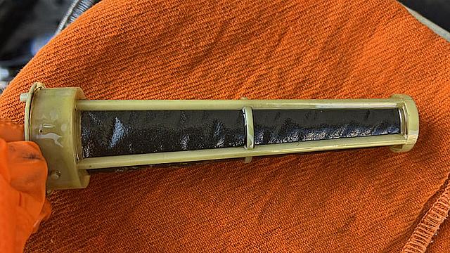 ![]() 1枚目の写真では汚れ具合がちと判りませんが、コッチはよく判りますね。 フィルターに付着した黒いのが鉄粉です。一体どこから発生するのでしょうね。 2021年に大貫自動車さんでATF交換作業後、これが原因でハイドロが 動作不能に陥り大騒ぎになりました。 |