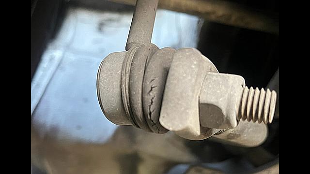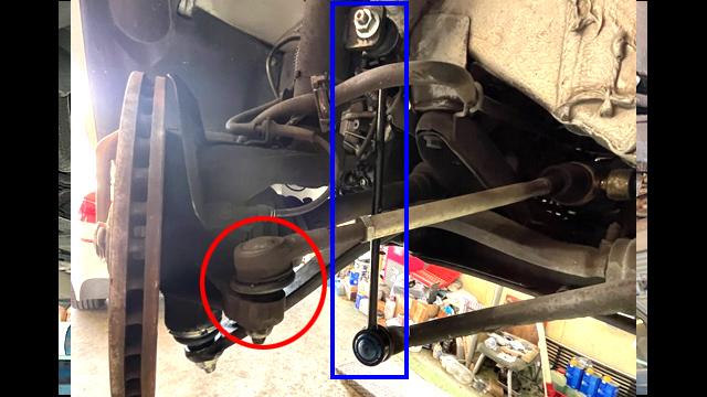 ![]() スタビロッドリンクのジョイント部のゴムも左右アウト。 放っておくとゴムが崩壊してガタが出るぞ。 |
